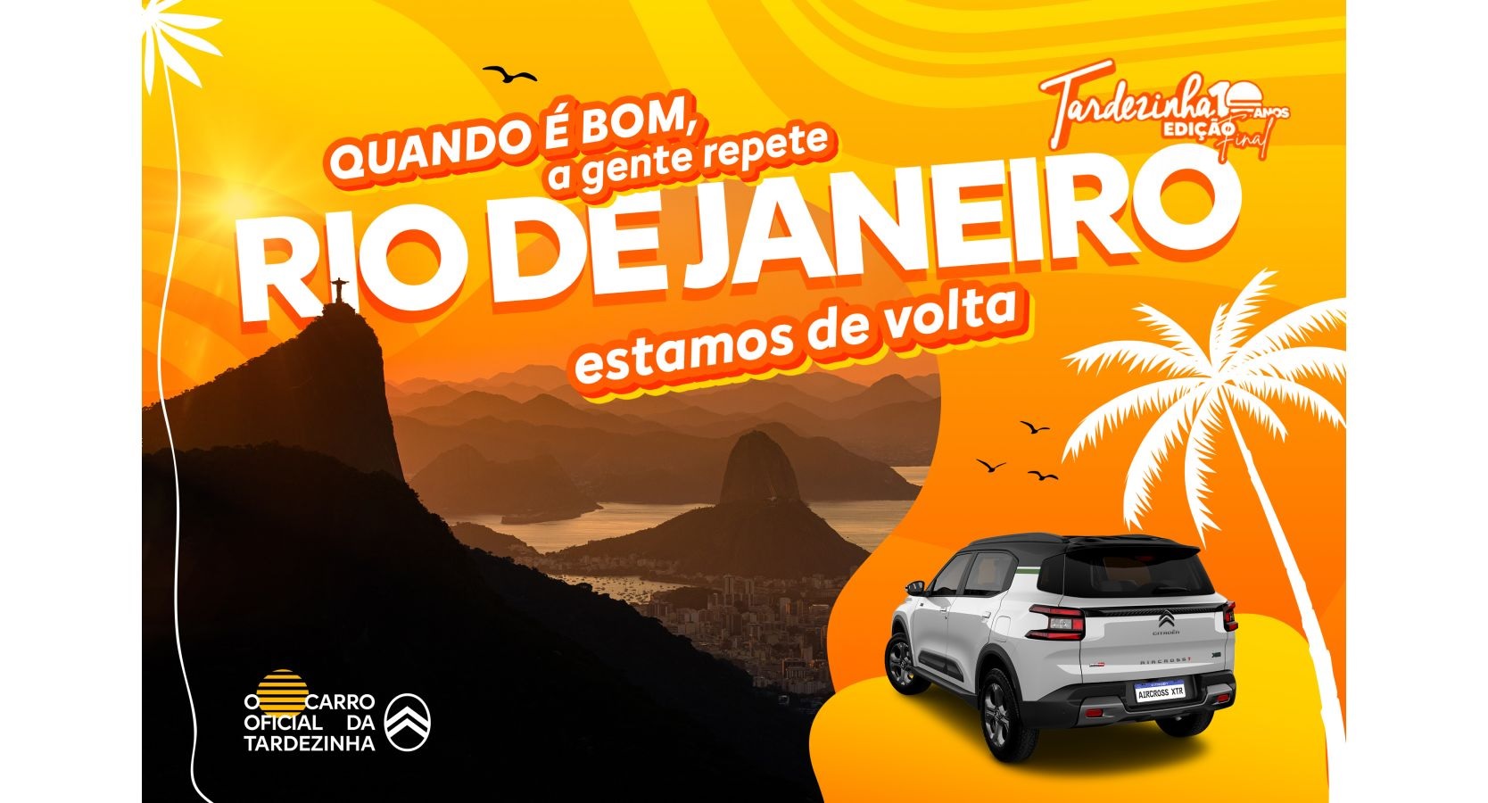“A turnê Tardezinha cria um espaço de celebração e encontro, e o Citroën Aircross XTR 7 Turbo 200 acompanha esse espírito ao entregar versatilidade, conforto e atitude em um único carro. Estar no Rio reforça nossa busca por experiências reais, próximas das pessoas, e que traduzem uma mobilidade acessível, alegre e alinhada ao estilo de vida brasileiro”, afirma Felipe Daemon, vice-presidente da marca Citroën para a América do Sul.