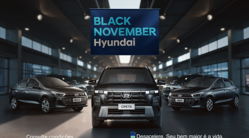 Hyundai lança campanha “Black November”, com descontos de até R$ 15 mil em toda linha HB20 e CRETA.