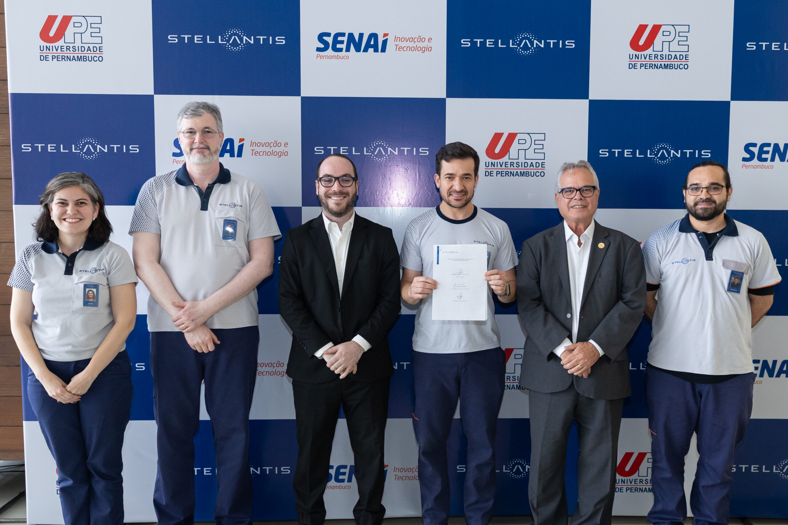 A parceria foi formalizada em uma cerimônia realizada hoje (7), no Polo Automotivo Stellantis de Goiana, com a presença de representantes das três instituições. O evento contou com a assinatura de parceria entre a Stellantis, o SENAI-PE e a UPE, além de uma visita técnica pelas instalações da planta, onde foram apresentados os processos industriais e as áreas que receberão as primeiras aplicações do projeto.